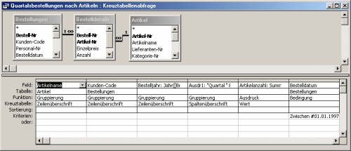 Bild 11: Kreuztabellenabfrage in der Entwurfsansicht