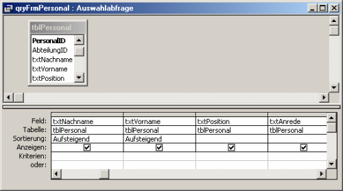 Bild 5: Ausgewählte Felder im Abfrageentwurf