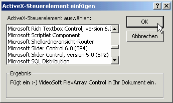 Bild 1: Der Dialog zum Einfügen von ActiveX-Steuer-elementen