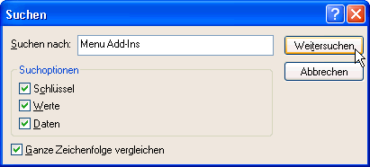 Mit relativ hoher Wahrscheinlichkeit finden Sie auf diese Weise den richtigen Schlüssel. Der mit diesen Sucheinstellungen gefundene Schlüssel sieht vermutlich wie in Bild 8 aus. Die (zumindest unter Access 97) im Add-In-Menü verfügbaren Add-Ins sind hier bereits eingetragen.