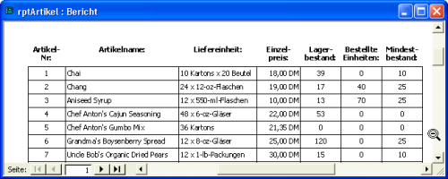 Interessanter wird das Einrahmen, wenn Sie eine Tabelle mit Daten komplett mit einem Gitternetz versehen möchten. Im folgenden Beispiel soll das in einem Bericht mit einer Artikelliste passieren.