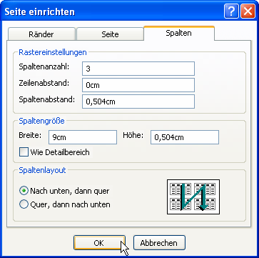 Bild 3: über den Dialog Seite einrichten definieren Sie das Spaltenlayout.