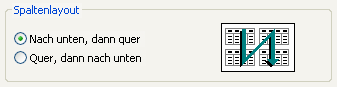 Im unteren Bereich des Dialogs geben Sie mit der Optionsgruppe Spaltenlayout vor, ob der Bericht die Datensätze zunächst von oben nach unten (erste Option) oder von links nach rechts (zweite Option) ausgibt (siehe Bild 3).