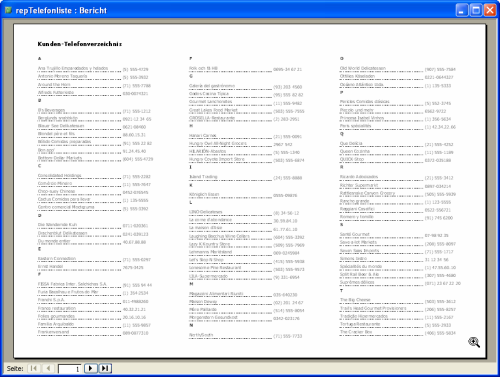Im Folgenden erstellen Sie ein Telefonregister, in dem Sie alle Kunden alphabetisch sortiert und nach dem Anfangsbuchstaben gruppiert ausgeben.