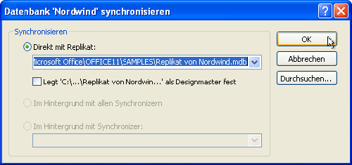 Um Kopien einer Datenbank zu erzeugen, die Sie nach der änderung der enthaltenen Daten wieder mit der Originaldatenbank zusammenführen können, müssen Sie zunächst eine so genannte Designmaster-Datenbank erstellen. Access ermöglicht dies durch einen einfachen Menübefehl, den Sie weiter unten kennen lernen. Die Designmaster-Datenbank weist einige Unterschiede zur Originaldatenbank auf. So werden Tabellen um Felder erweitert und neue Systemtabellen angelegt. Diese Erweiterungen sind sehr wichtig, weil sie etwa das Erkennen von geänderten Daten beim Zusammenführen mehrerer Replikate ermöglichen und dabei auftretende Konflikte lösen oder diese zumindest dem Benutzer melden.